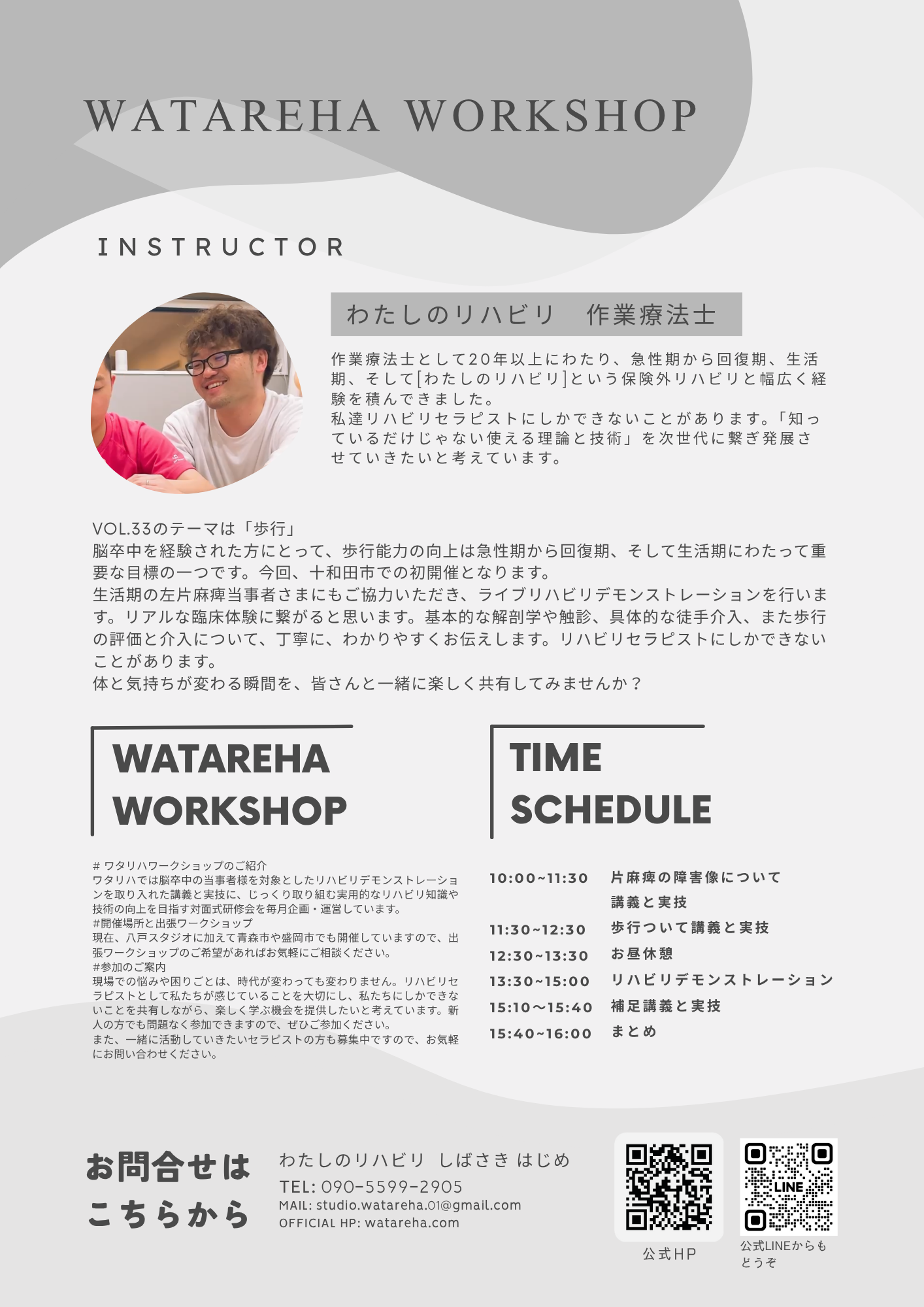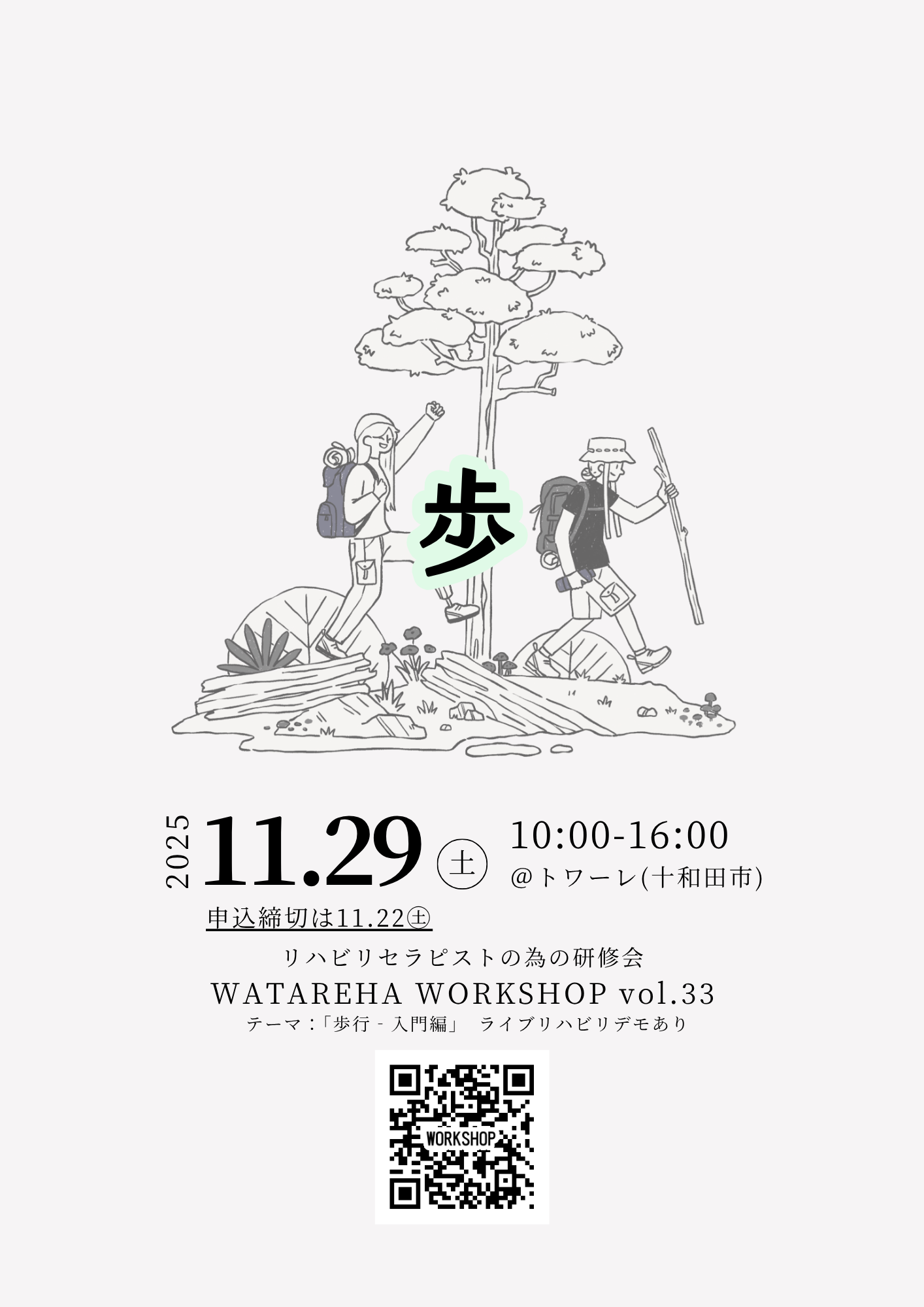 ワタリハの考え方やリハビリ技術を学びたい、一緒に活動をしてみたいというリハビリセラピストを探しています。人数限定となりますが、基本的な考え方から応用技術までじっくりと時間をかけてお伝えします。※八戸近郊にお住まいの方で定期的にワタリハに通える方が対象となります。詳細は公式LINE、Instagram、電話などからお気軽にお問合せください。